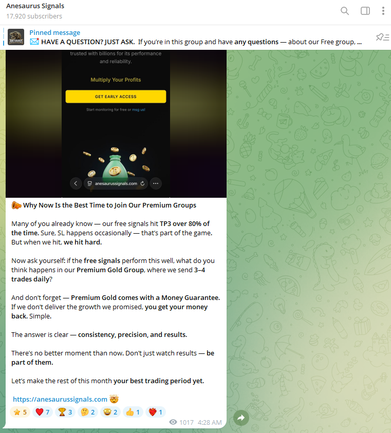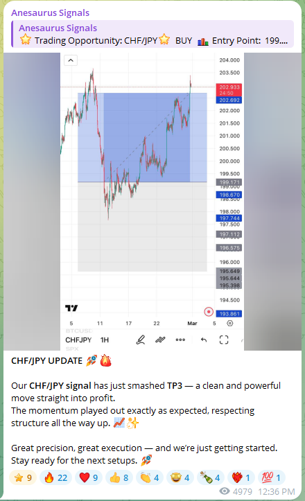 I know it sounds like a Dinosaur with a ginormous posterior, but Anesaurus Signals is actually a trading service. They provide signals with entry price, take profit, stop loss levels alongside some market analysis and trading guidance.