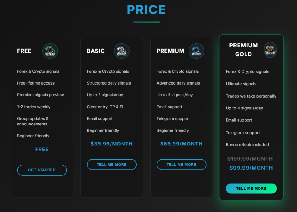 The only real differences between the plans is that the more you pay, the more signals you get, the more access to support, and the most expensive $99.99 plan comes with a bonus ebook.