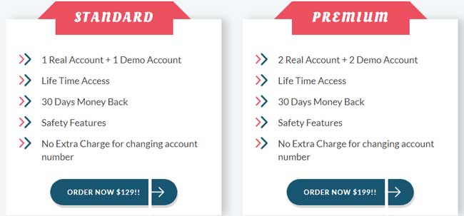 There are currently 2 packages available for traders looking to sign up with the Exreign services. There is a standard package which goes for $129, and a premium package which goes for $199. Both packages come with lifetime access, a 30 day moneyback guarantee, safety features and no extra charge for changing account numbers. The only difference, is that the standard package comes with one real account and one demo account, while the premium package comes with 2 of each.