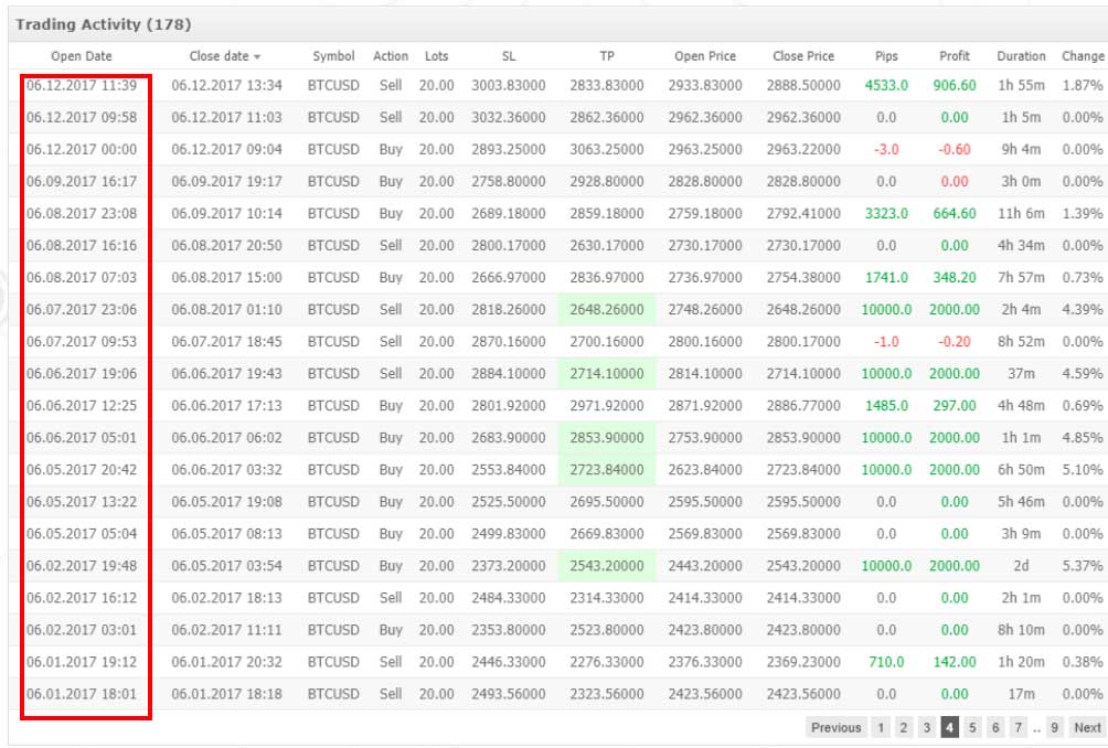 Normally, the developer of Scalp Bitcoin provides us with long-term Myfxbook accounts. You can see this is the case with the releases of Fluid Trader, Signal Steps, TriStar Trader, and others. Yet, in this case we are provided with many different screenshots from a Myfxbook account, but we are never given direct access. The only reason I can think of for not providing us with this access, is if the trading account doesn’t exist or it blew up.