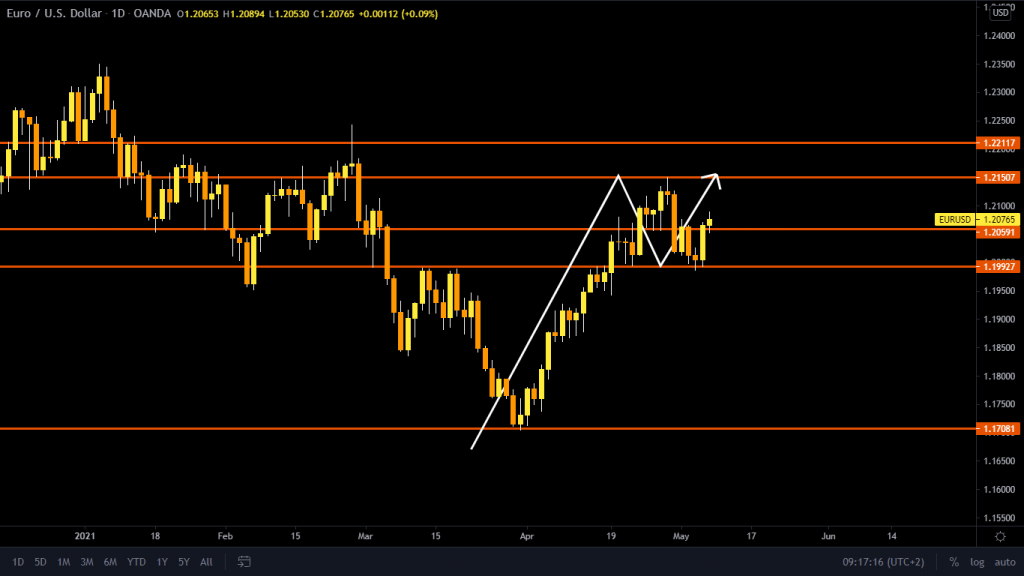 The price on the higher time frame is posting higher highs and lows and managed to break the strong resistance around the 1.2059 USD mark. A lower correction has been posted to this level which is now a support. Further movement to the upside might be seen in the coming hours.