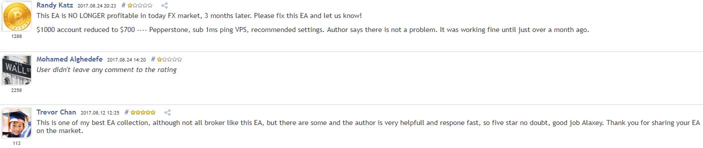 As of today, there seem to be 2 new one star reviews from clients that claim that the EA is no longer profitable in today’s market conditions.