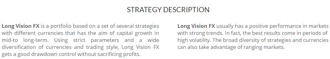 Today I’m looking at one of the most followed trading accounts on Myfxbook, Long Vision FX. This trading system is intended to provide traders with mid-to long-term growth “using strict parameters and a wide diversification of currencies and trading styles.” One of the main aspects of their trading methodology, is to keep a very small drawdown without sacrificing account growth.