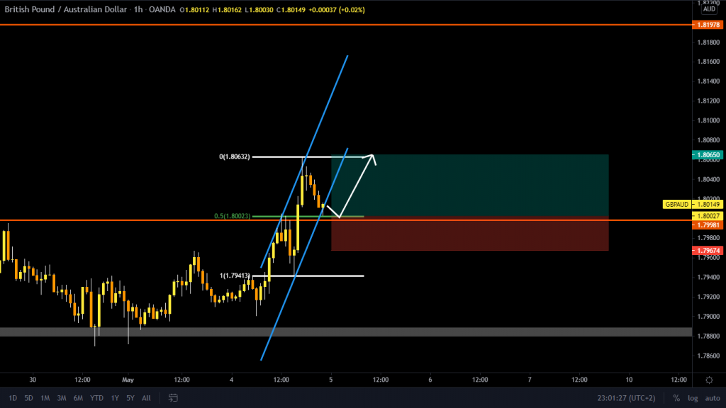 On the 1-hr time frame, the price is trading above the resistance at 1.7998 USD mark where we expect a sideways movement before rallying all the way up toward the target profit.