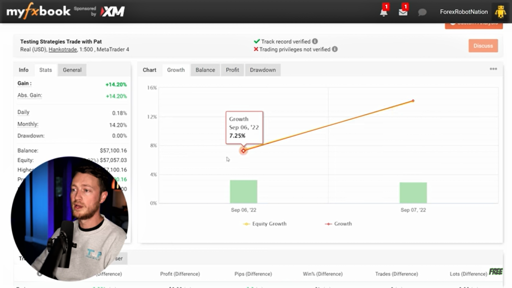 In Myfxbook live verified trading account, you can see after day one, I had a 14-point 11% growth on my $50,000 trading account (profit of $7,100).