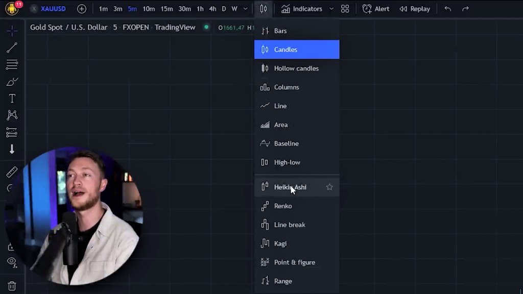 3. Go to the candles tab and change your standard ones to Heikin Ashi. It looks weird, but it’s what you want.
