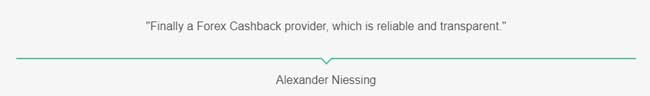 The first review is from Alexander Niessing, who says “finally a Forex cashback provider, which is reliable and transparent.”