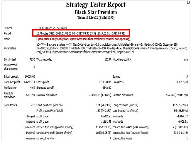 As is frequently the case with products on the MQL5 marketplace, the real results for the EA Black Star are lackluster. Both the original and premium versions of the robot provide us with backtests, and only backtests. As you probably know by now, I prefer statement sharing websites like Myfxbook or FXStat.