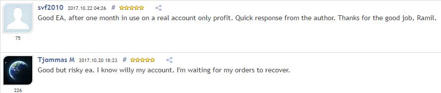 One of the reviews points out that many of the five-star comments provided are because the expert was made free on the first day. He believes that this is a trick to move an expert advisor to the top of the expert advisor page on MQL5.