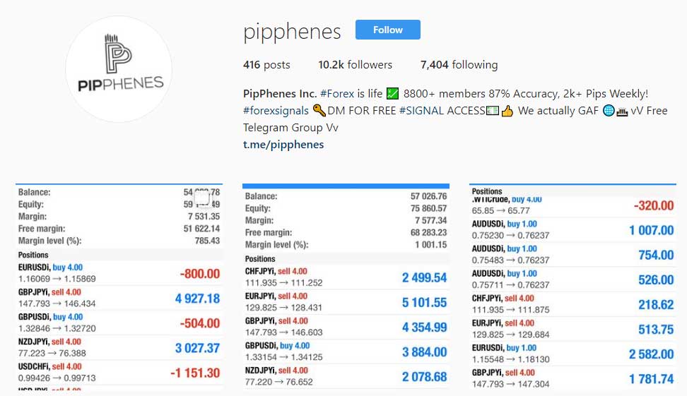With very little information provided about the development team, and the trading strategy, there is a lot of pressure for the PipPhenes service to provide stellar trading results. Much to my disappointment, this isn’t really the case. I do commend the team for putting together an Instagram account where trading screenshots are posted regularly, but it’s very difficult to work through these disjointed images and get a clear picture of the service. With this type of method, it’s easy for the vendor to cherry pick the winning trades, and cut out the losers. Keeping this in mind, here are a handful of the claims being made by the signal service provider.