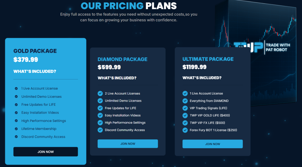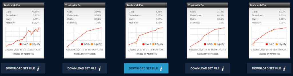 The Trade with Pat ROBOT is an expert advisor built for all MetaTrader brokers, compatible with MT4 & MT5. It can be used on Forex, Gold, Indices & even crypto.