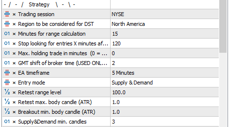 Then, I have the supply & demand entry mode, which means when price creates a level of demand as we break out of the range, the robot will wait for price to come back to that level as my area of interest before entering a trade.