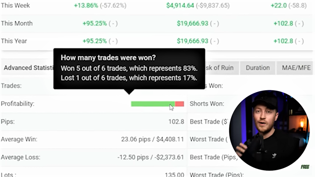 I lost my first trade but was up 30 percent, 49 percent, and finally, 65 percent on subsequent days. That means I had a win rate of 83 percent by winning five out of six trades.