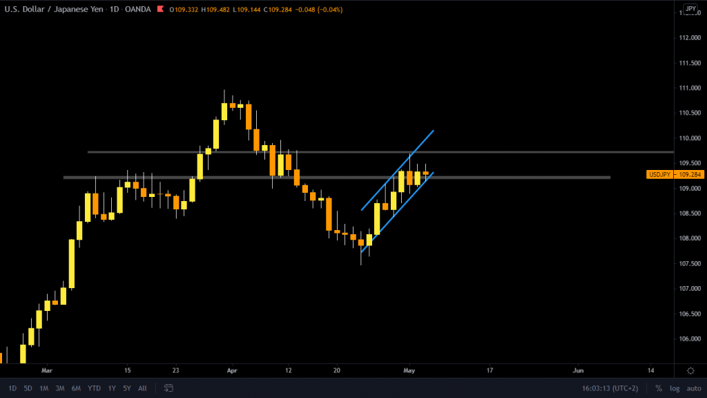 The price on the higher time frame was in a clear uptrend where the market is posting higher highs and lows. The coin is traded inside a bullish channel formation. It managed to break the 109.20 USD mark, and retrace to it. We expect further movement to the upside in the coming hours.